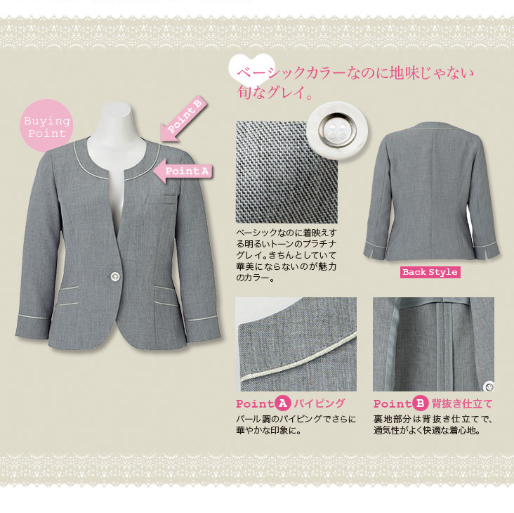 【在庫限り】[春夏用]<Platine>ベーシックなのに着映えするプラチナグレイのジャケット(34-LJ0759)