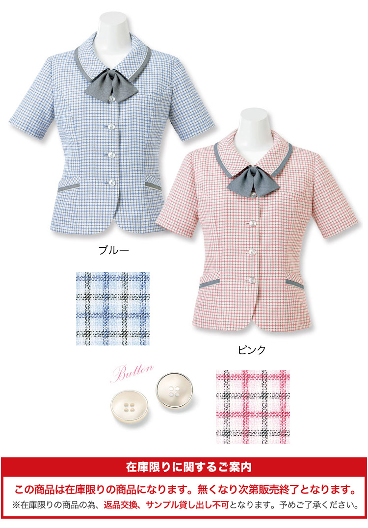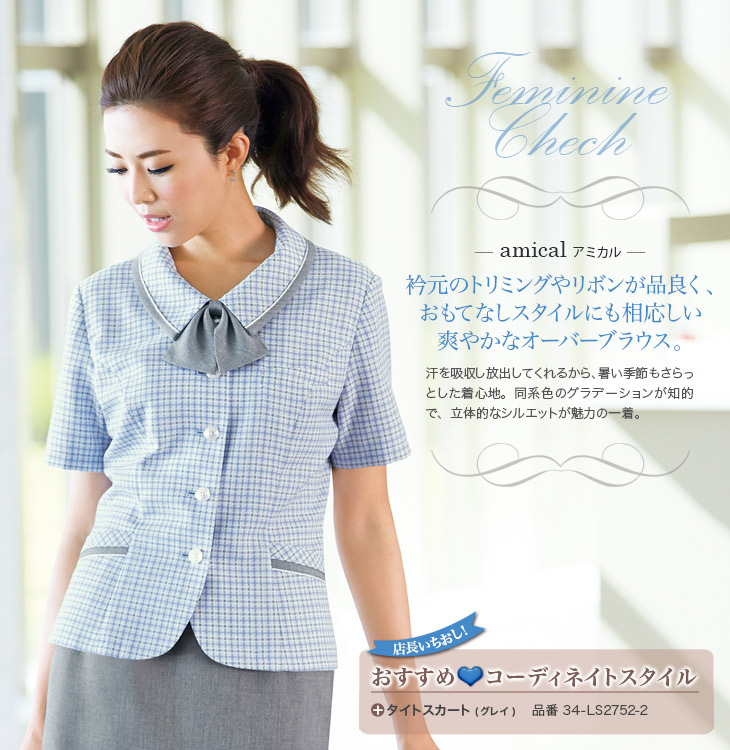 【在庫限り】[春夏用]<amical>チェック柄・リボン付きオーバーブラウス(34-LJ0761)