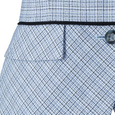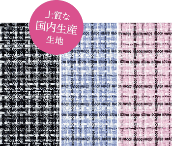 7種類の糸を織り込んだ贅沢なサマーツイード素材。ランダムな柄と上品なカラーグラデーションが涼しげな印象です。太細の糸の組み合わせと立体感のある組織が通気性を上げ、蒸し暑い夏でも爽やかな着心地。