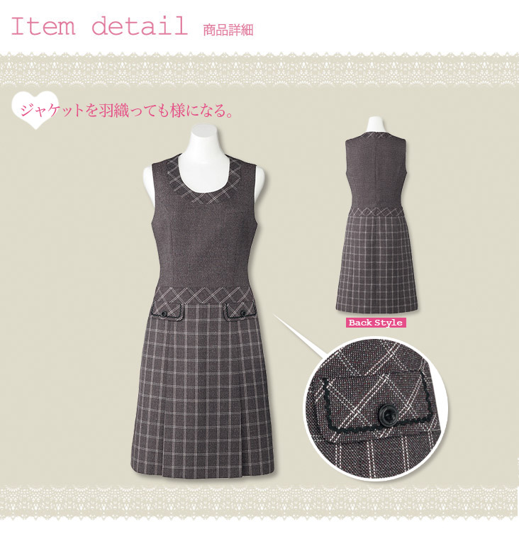 【在庫限り】[通年]<Emu>チェック×無地がキュート! ツイード素材のジャンパースカート(34-LO5103)