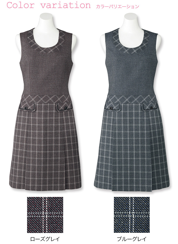 【在庫限り】[通年]<Emu>チェック×無地がキュート! ツイード素材のジャンパースカート(34-LO5103)