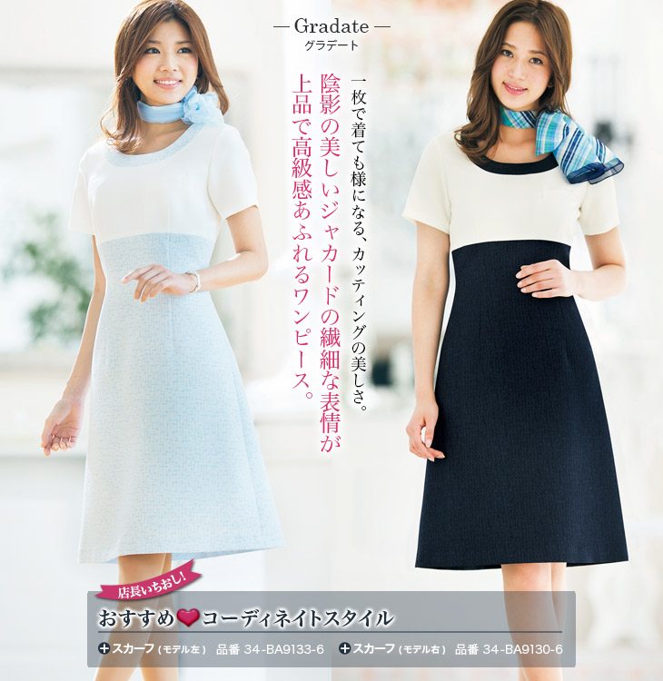 【在庫限り】[春夏用]<Gradate>モザイク柄が洗練された上品で爽やかなワンピース(34-LO5706)