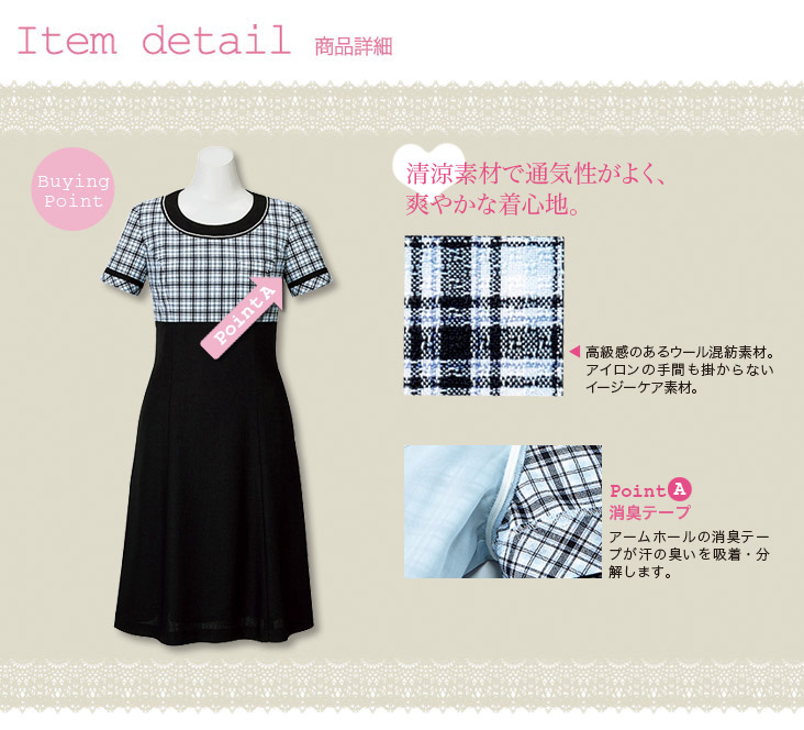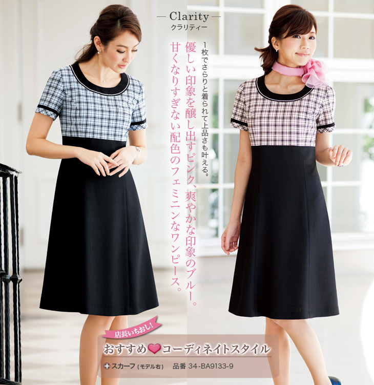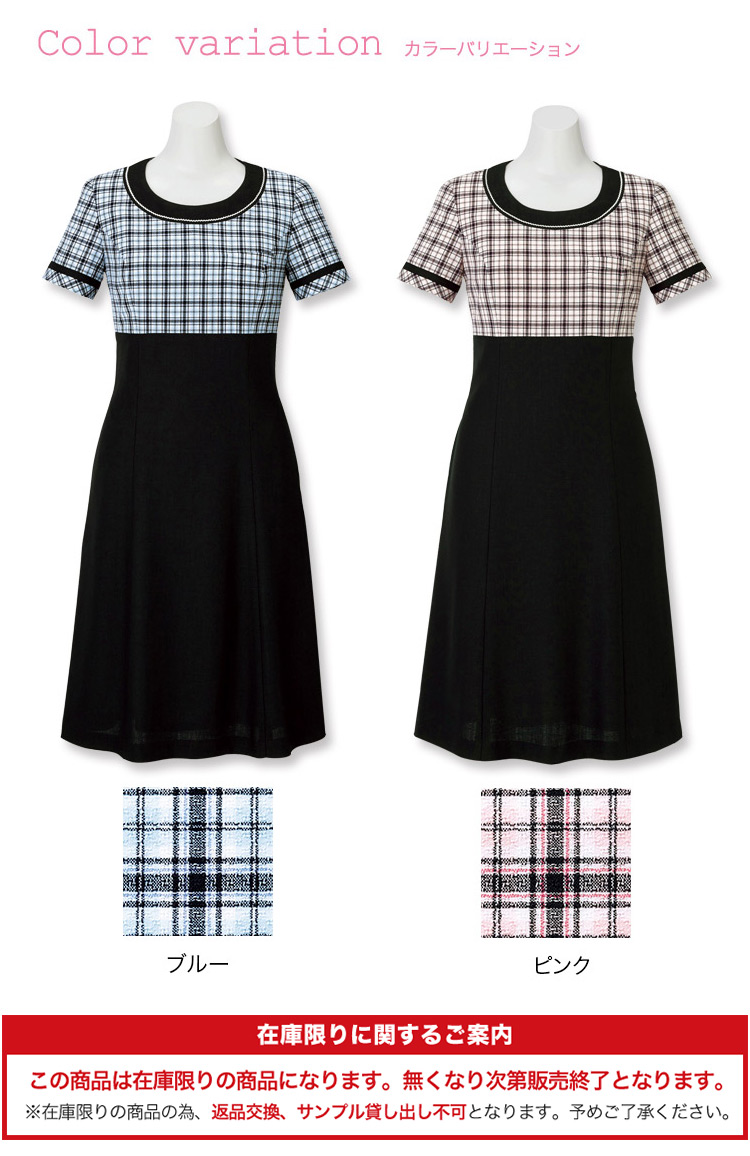 【在庫限り】[春夏用]<Clarity>優しい色使いのパステルチェック×無地のワンピース(34-LO5709)
