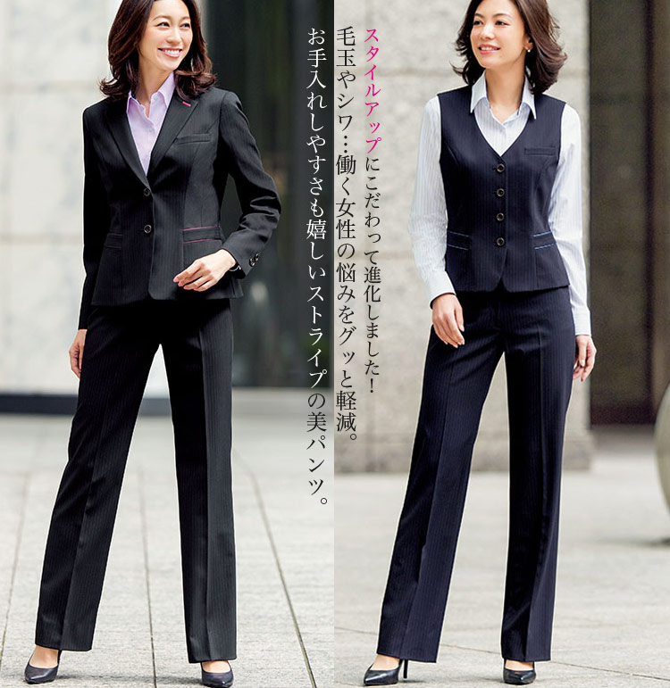 [通年]スタイルアップできる高機能素材のストライプパンツ(34-LP6121)