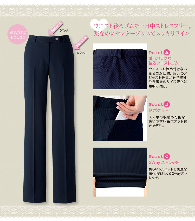 | ウエスト | 65 | 67 | 70 | 73 | 76 | 80 | 85 | 90 | 95 | |