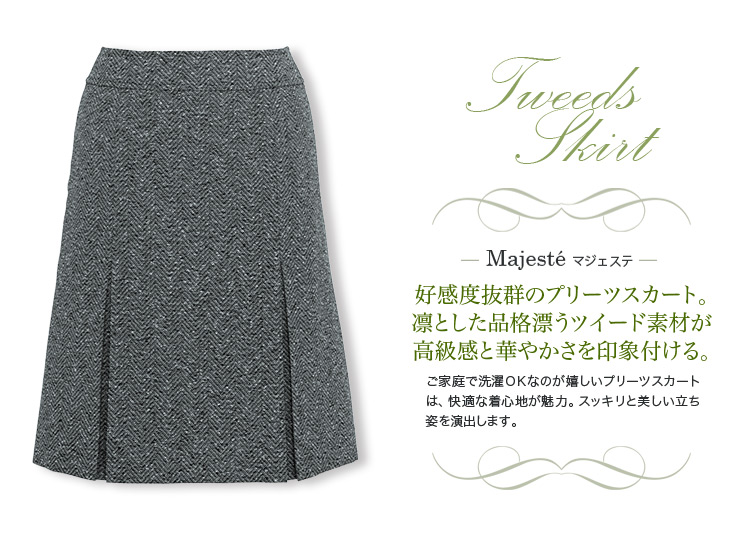 【在庫限り】[通年]<Majeste>華やかで美しいライン、高級感漂うツイード素材のプリーツスカート(34-LS2181)