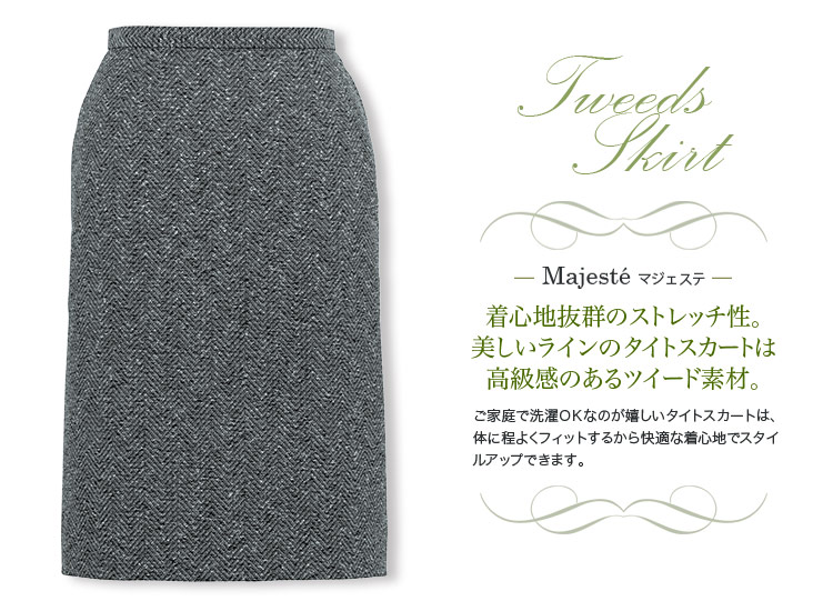 【在庫限り】[通年]<Majeste>高級感漂うツイード素材のスッキリ見えるタイトスカート(34-LS2182)