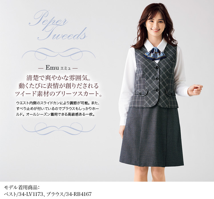 【在庫限り】[通年]<Emu>深みのある色合いのペッパーツイード素材のプリーツスカート(34-LS2191)