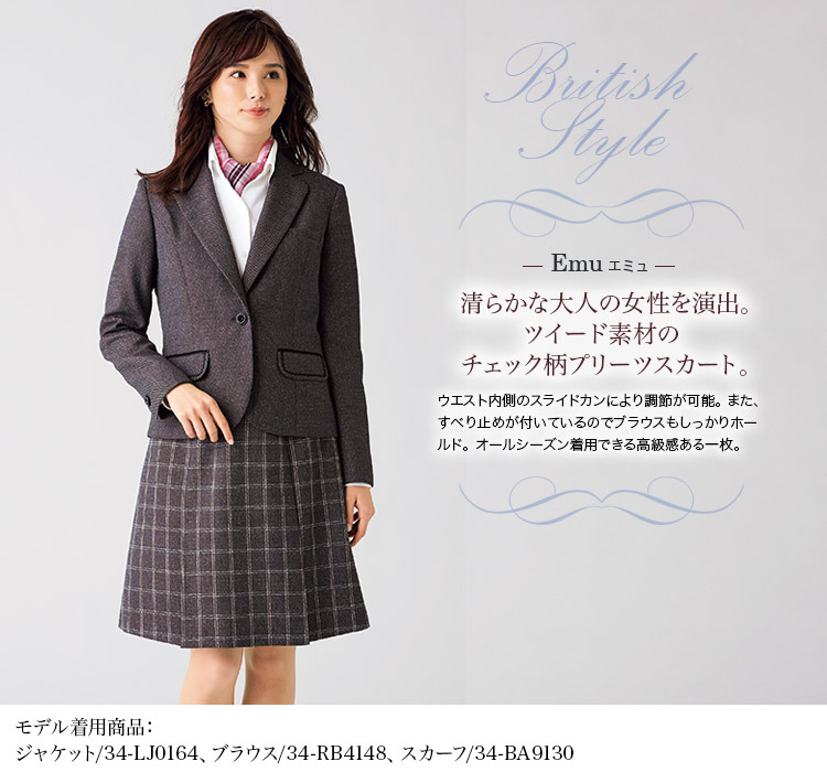 【在庫限り】[通年]<Emu>清らかな雰囲気のチェック柄。ツイード素材のプリーツスカート(34-LS2193)