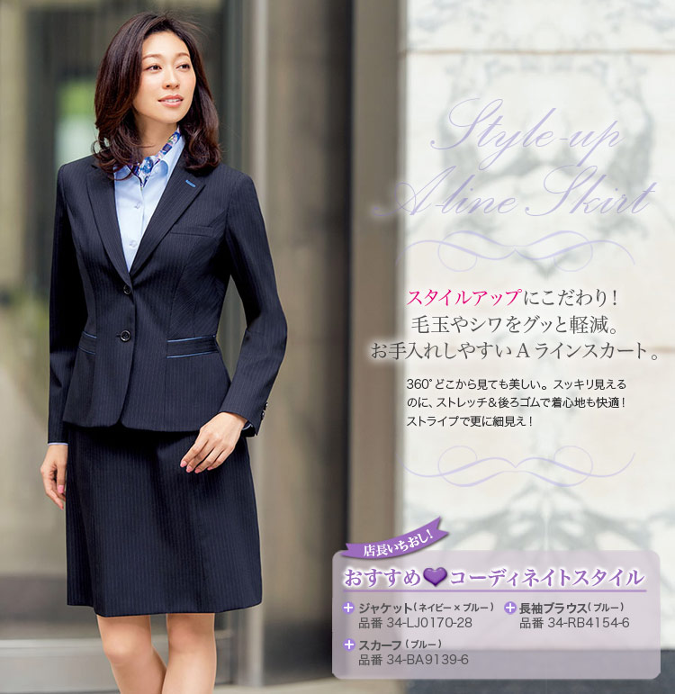 [通年]スタイルアップできる高機能素材のストライプAラインスカート(34-LS2198)