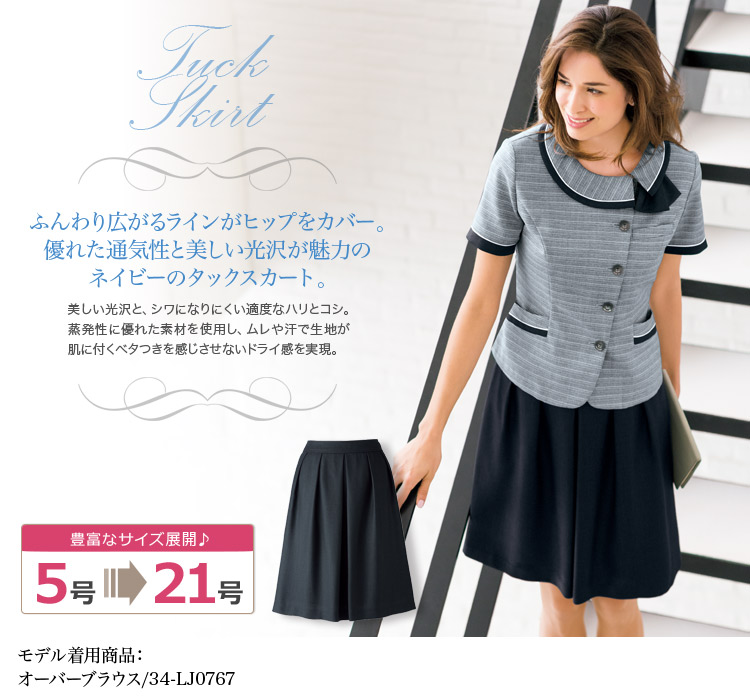 【在庫限り】[春夏用]サラリとした着心地!ふんわりしたシルエットが魅力のネイビー・タックスカート(34-LS2745)