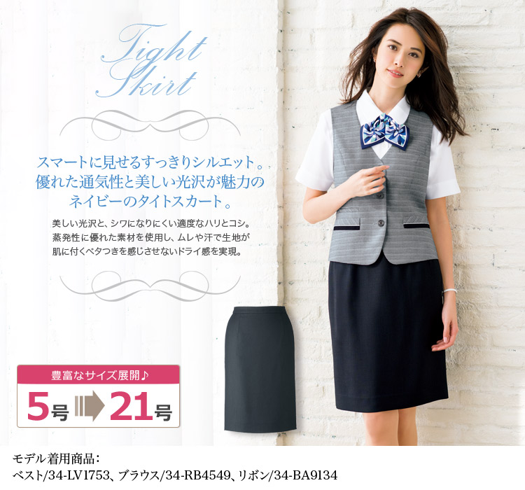 【在庫限り】[春夏用]サラリとした着心地!すっきりスマートラインのネイビー・タイトスカート(34-LS2747)
