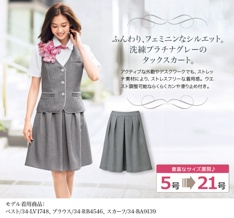 【在庫限り】[春夏用]<Platine>ふんわり柔らかで女性的なプラチナグレイのタックスカート[女性用](34-LS2750)