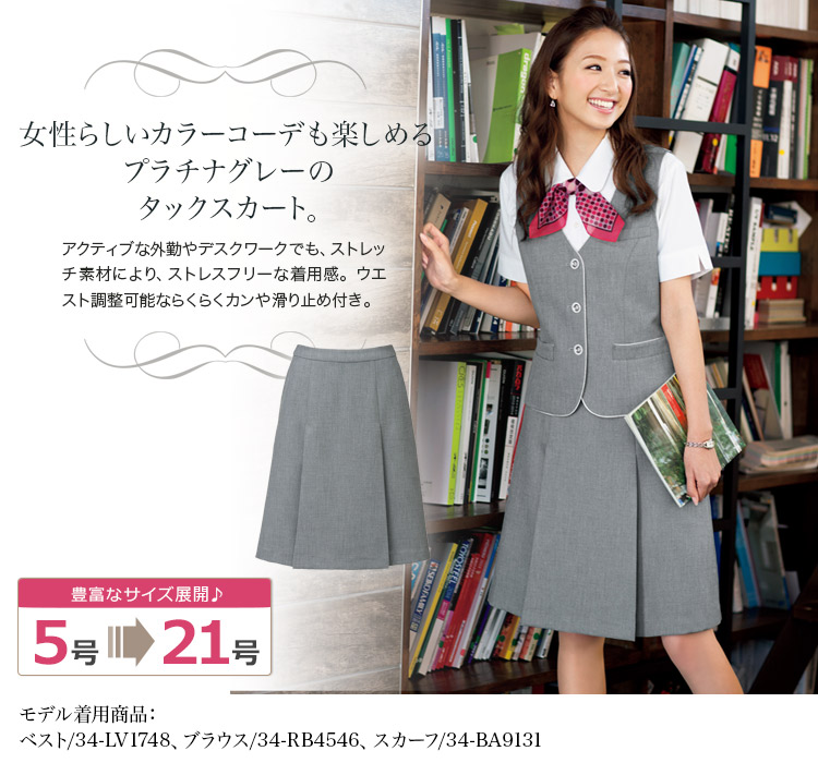 【在庫限り】[春夏用]<Platine>上品なプラチナグレイのプリーツスカート<54㎝>(34-LS2751)