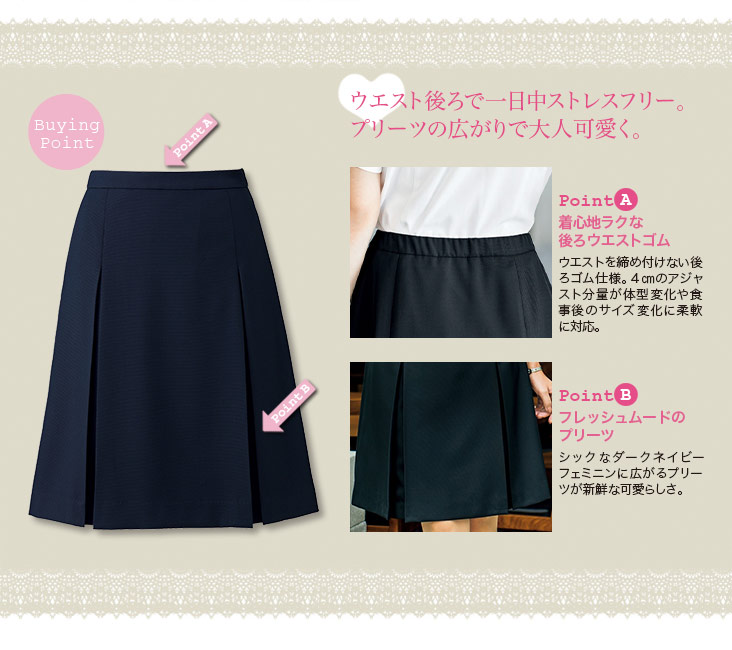 このスカートは後ろにプリーツがないので座り皺ができないのが良いですし、ウエストゴムが楽チンです。子供っぽくなく適度に可愛らしいラインもとても良いと思います。
