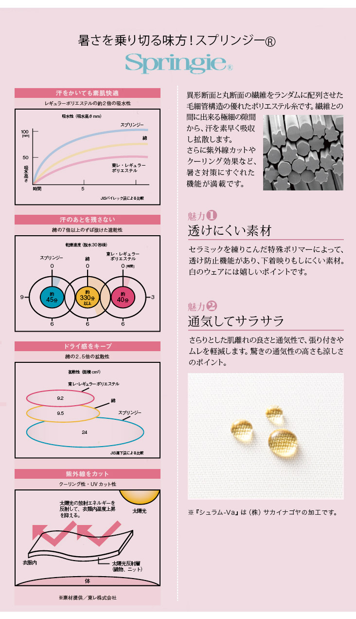 その他、透け防止機能や紫外線カットやクリーニング効果など、夏対策に優れた機能が満載です。