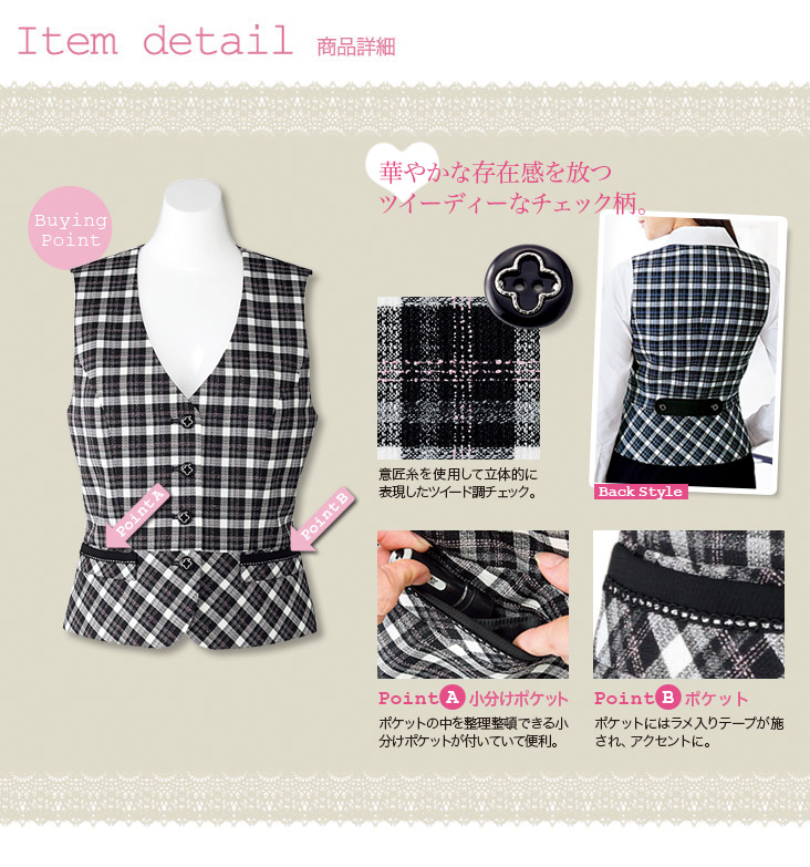 【在庫限り】[通年]チェック柄ツイードベスト(34-LV1171)