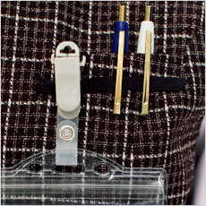 胸ポケットには、名札とペンを一緒に挿してもすっきり収まるブラックのネームループ付き。