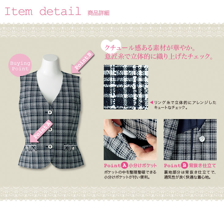 【在庫限り】[春夏用]チェック柄ベスト(34-LV1744)