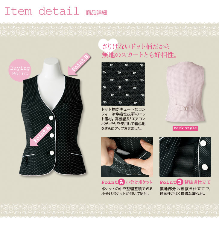 【在庫限り】[春夏用]ドット柄ベスト(34-LV1745)