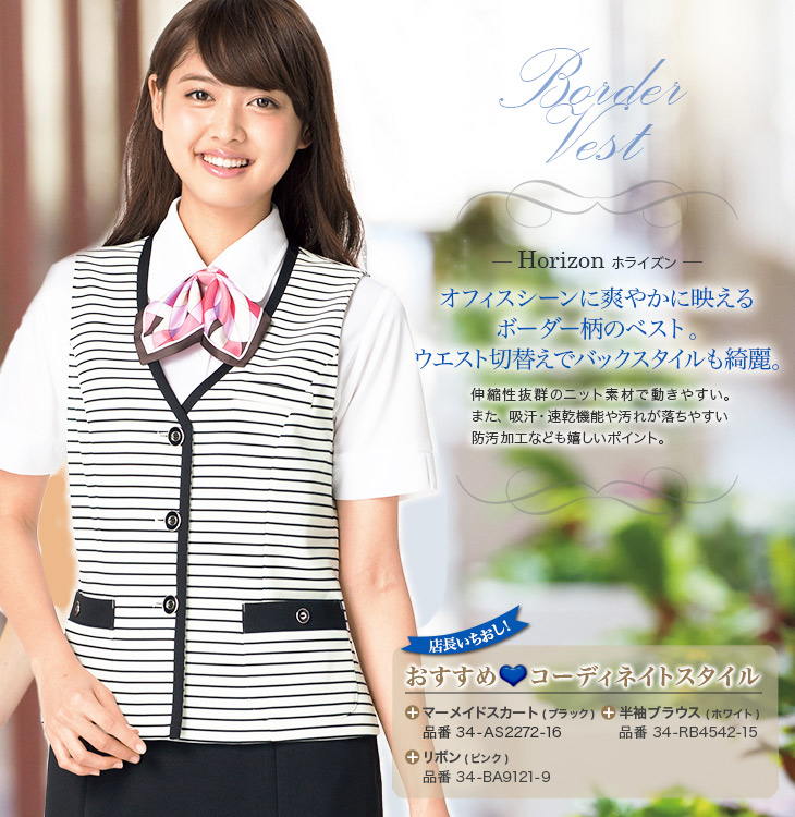 【在庫限り】[春夏用]ボーダー柄のベスト(34-LV1746)