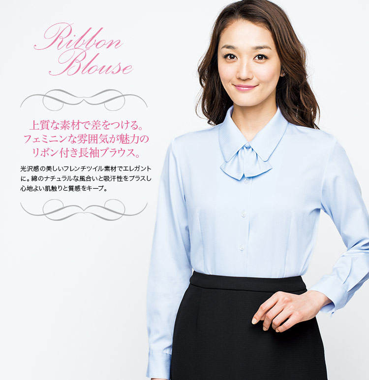 [通年]フェミニンに着こなせるエレガントなリボン付きブラウス[長袖](34-RB4135)