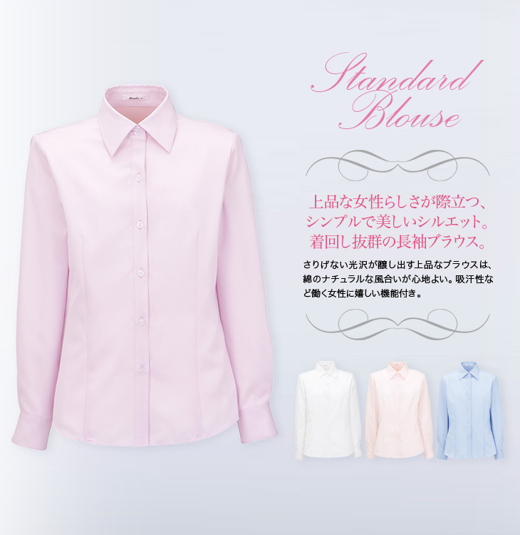 [通年]シンプルなデザインが上品な女性らしさを引き立たせるブラウス[長袖][女性用](34-RB4136)