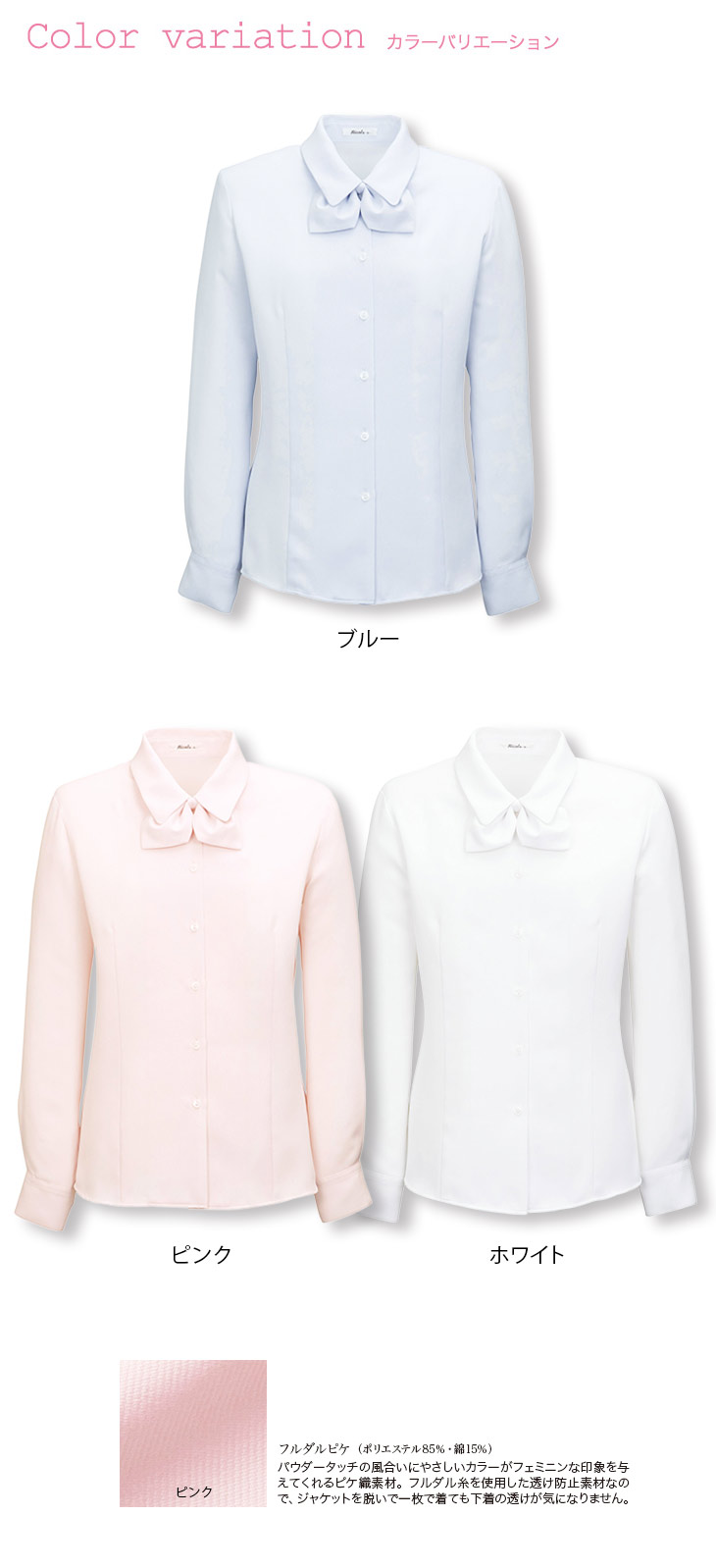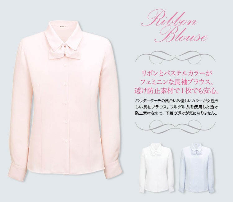 【在庫限り】[通年]1枚で着られる安心の透け防止素材・リボン付きブラウス[長袖](34-RB4138)