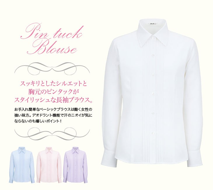 【在庫限り】[通年]胸元のピンタックがスタイリッシュなブラウス[長袖](34-RB4140)