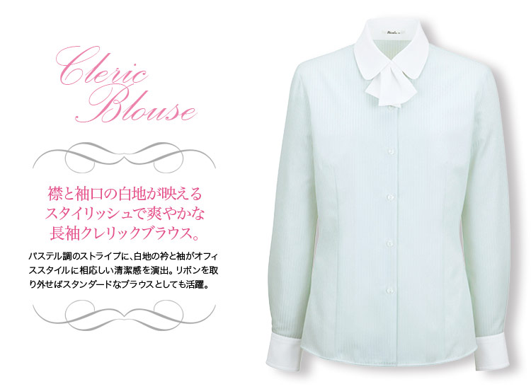 【在庫限り】[通年]爽やかで清潔感のあるクレリックブラウス[長袖](34-RB4141)