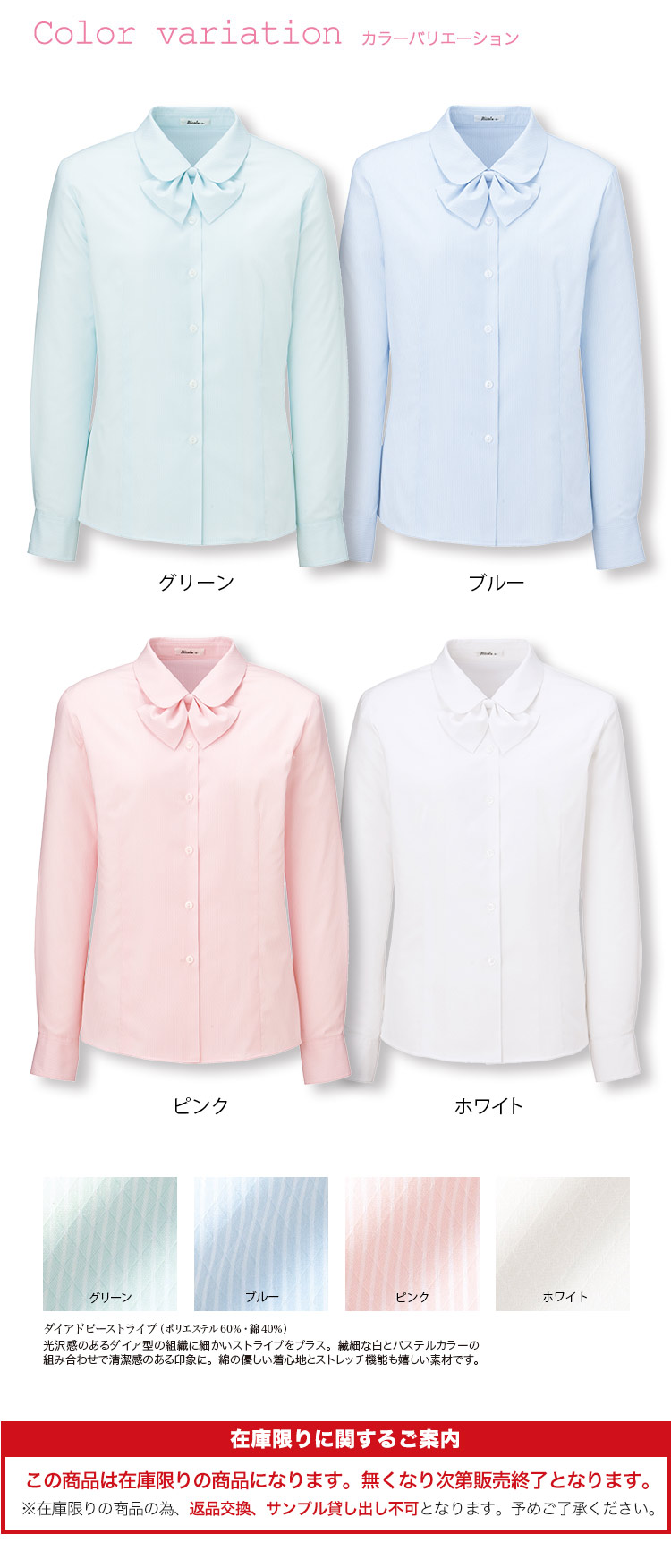 【在庫限り】[通年]3パターンの衿元を楽しめる、爽やかなリボン付きブラウス[長袖](34-RB4143)