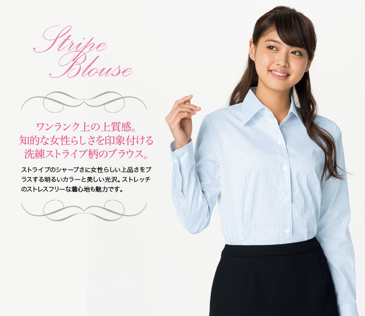 【在庫限り】[通年]知的な印象にアップグレード!上品なストライプ柄ブラウス[長袖](34-RB4146)