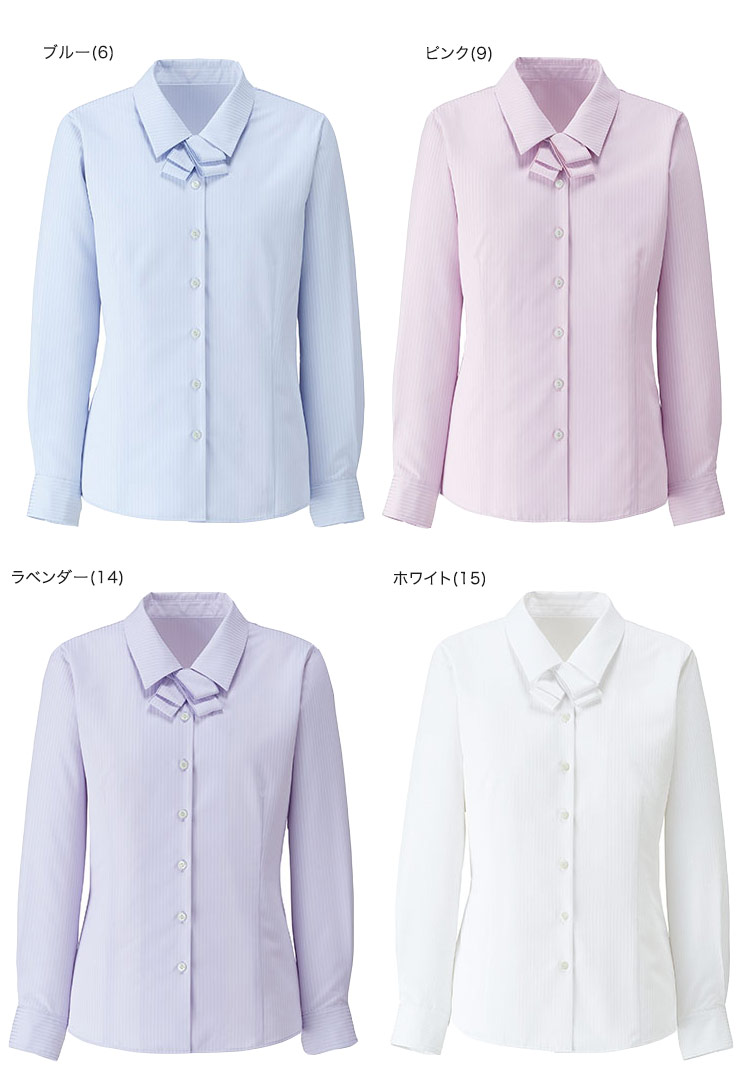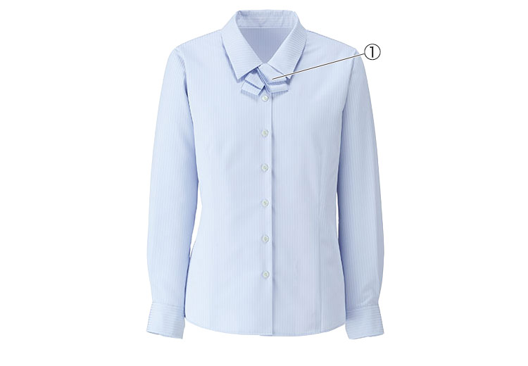 [通年]長袖ブラウス[制菌/低刺激/シャドーストライプ/リボン取り外し可能](34-RB4164)