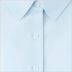抗菌防臭加工「ポリジン・バイオスタティック」を採用した、シャドーダイヤ柄のブラウス。首まわりにゆとりのある襟の設計とアクセサリーループ付き。