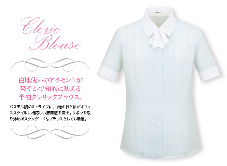 【在庫限り】[通年]爽やかで知的な雰囲気のクレリックブラウス[半袖](34-RB4536)