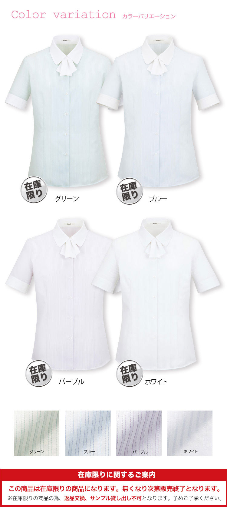 【在庫限り】[通年]爽やかで知的な雰囲気のクレリックブラウス[半袖](34-RB4536)