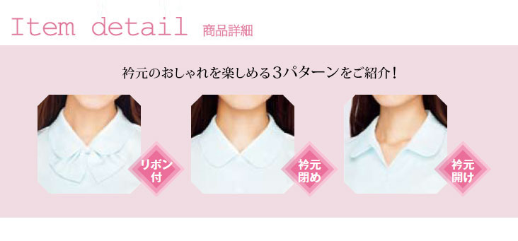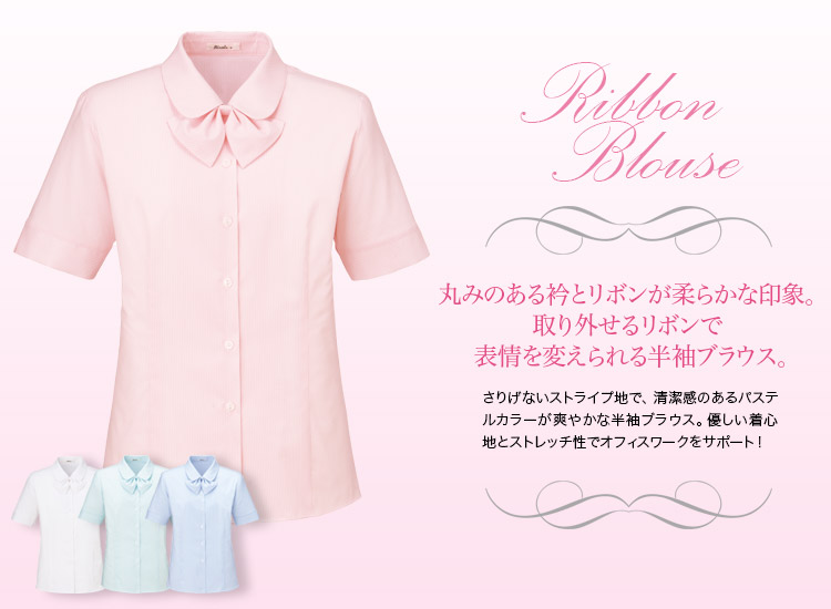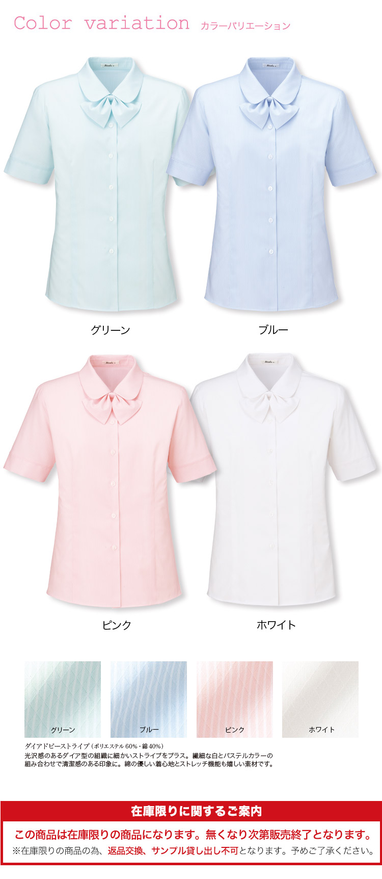 【在庫限り】[通年]3パターンの衿元を楽しめる、爽やかなリボン付きブラウス[半袖](34-RB4538)