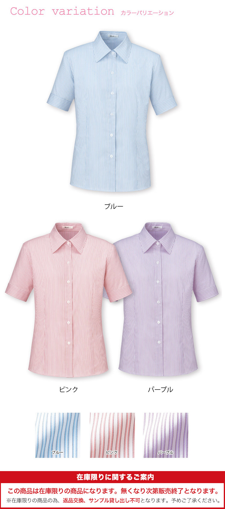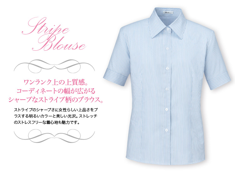 【在庫限り】[通年]知的な印象のストライプ柄ブラウス[半袖](34-RB4541)