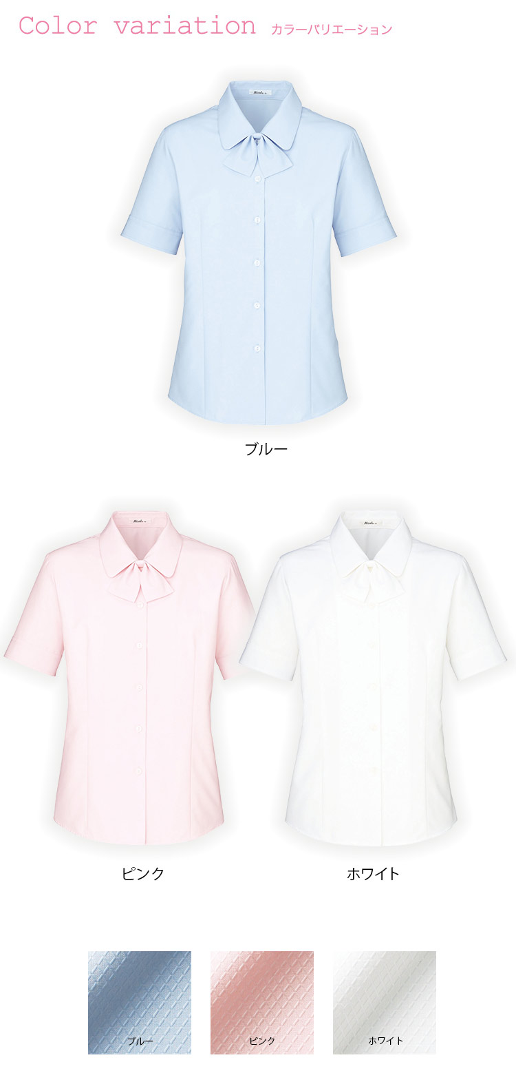メーカー,ボンマックス,BONMAX,ボンマックス,BONMAX,半袖,シャツ,ブラウス,事務服,無地,オールシーズン,春夏,秋冬,ホワイト,ブルー,ピンク,台衿,かわいい系,カワイイ,エ レガント,ホームクリーニング可,吸汗・速乾,UVカット,UVカット効果,防透性,リボン付き,ファイテン