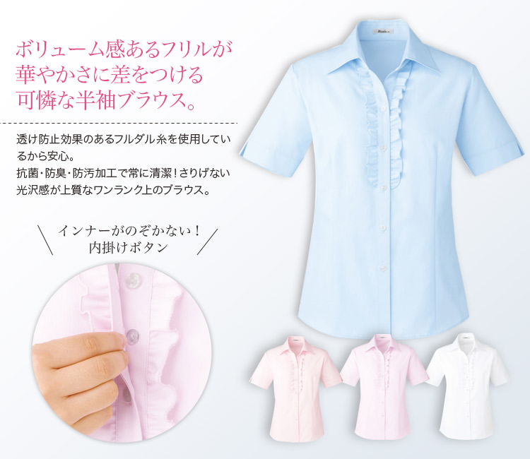 【在庫限り】[通年]華やかさをプラスするエレガントなフリル付きブラウス[半袖](34-RB4544)