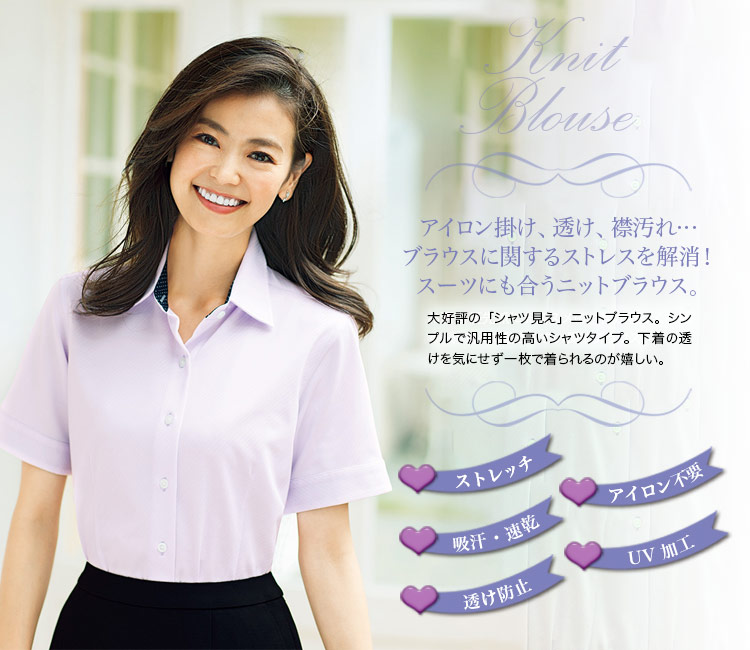 [通年]シャツの悩みを解消し常に美しく!定番のシャツ型半袖ニットブラウス(34-RB4552)