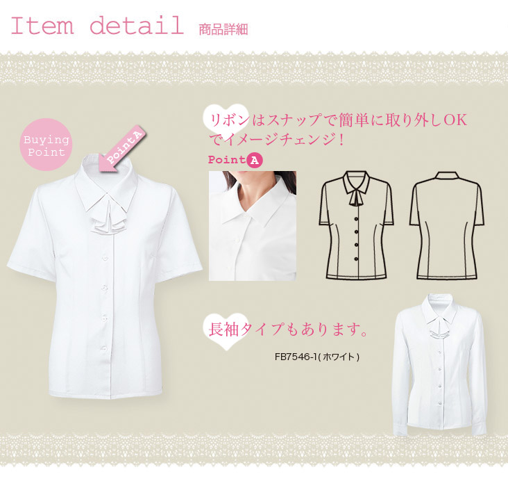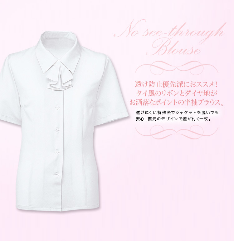 【在庫限り】[通年]透けにくくて、取り外し可能なリボン付き半袖ブラウス(76-FB7086)