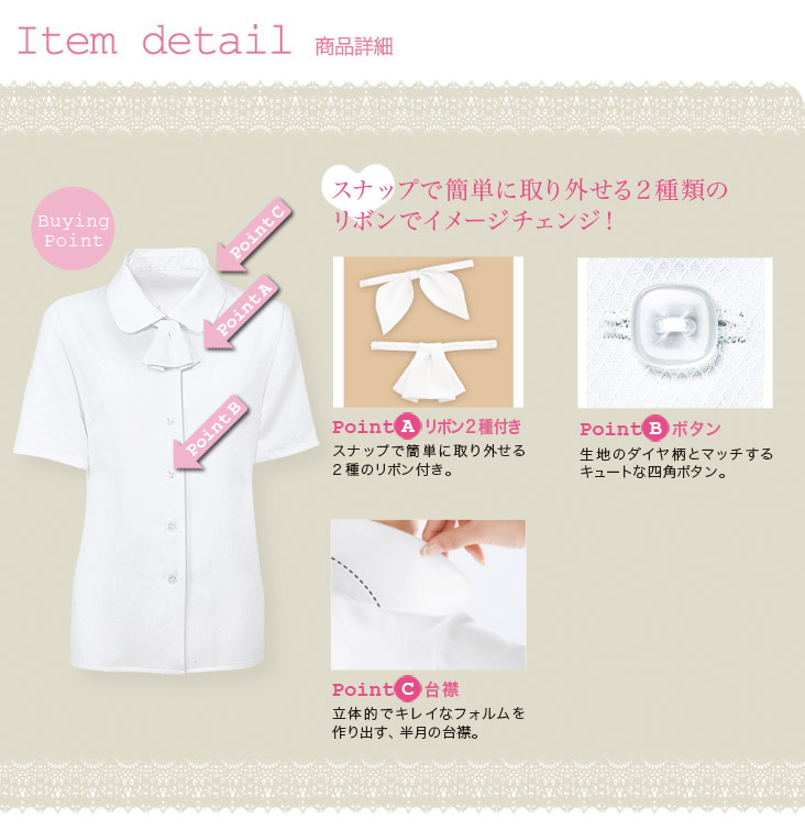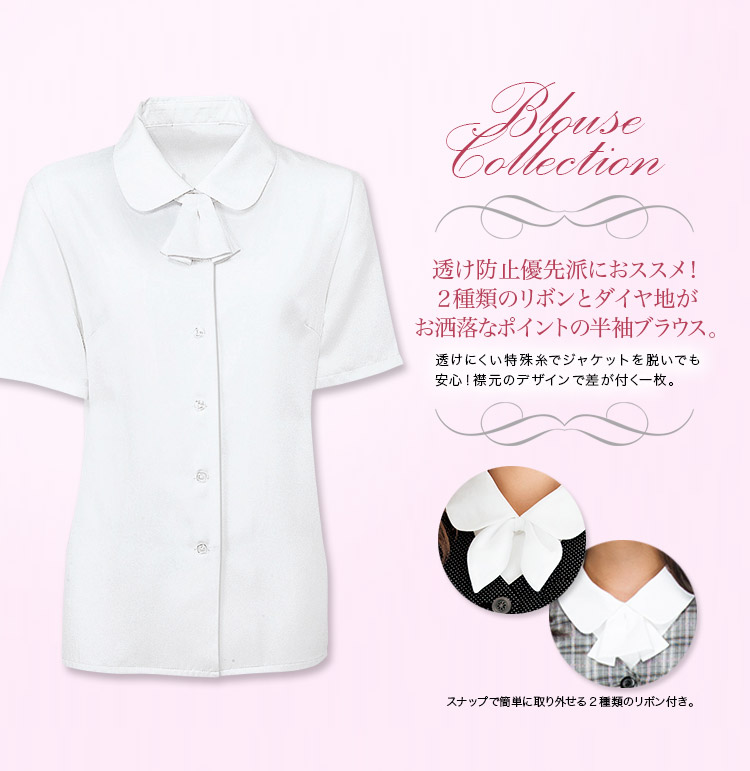 [通年]簡単に取り外せる2種類のリボン付き、半袖ブラウス(76-FB7091)