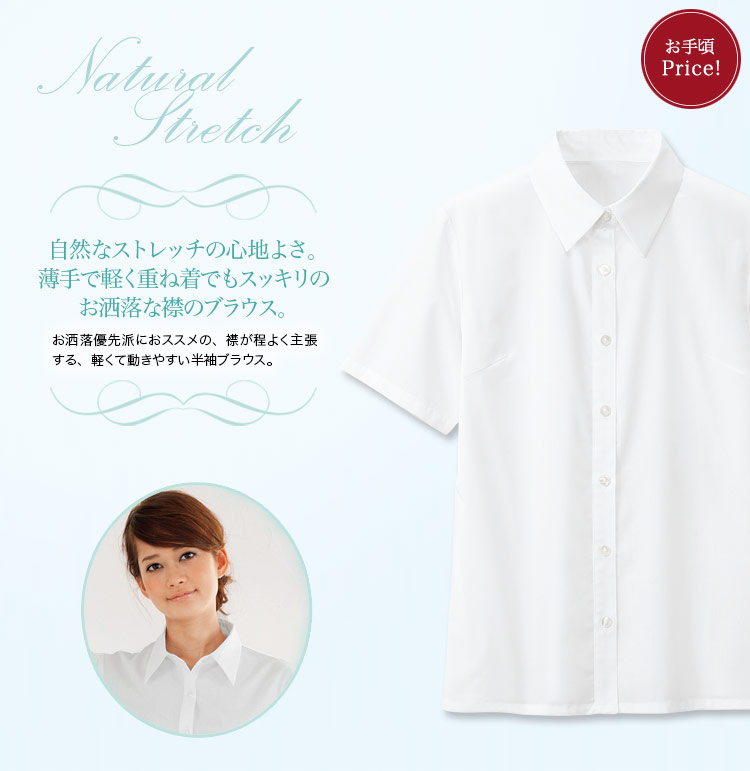 ナチュラルストレッチで動きやすく、リーズナブルな半袖ブラウス
