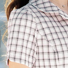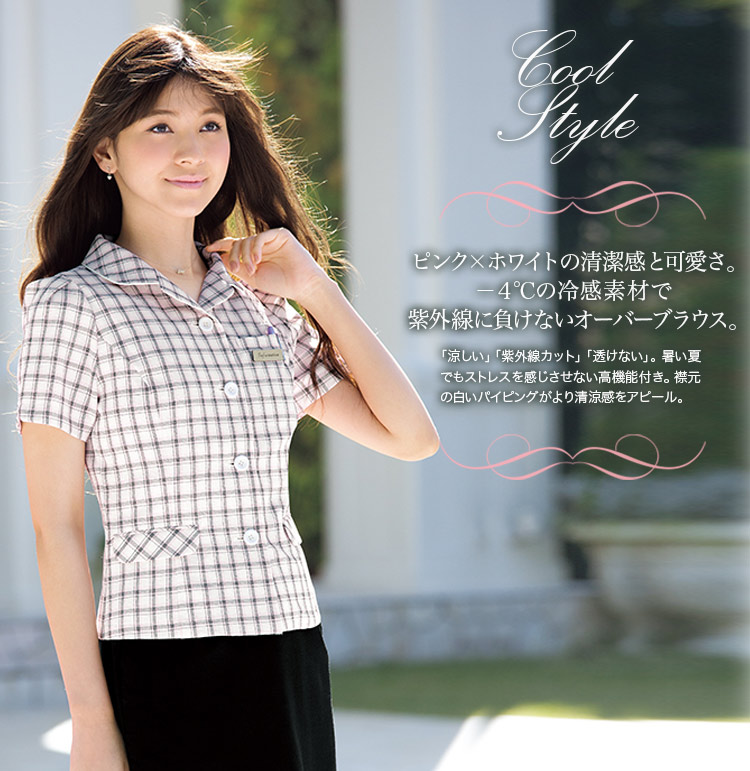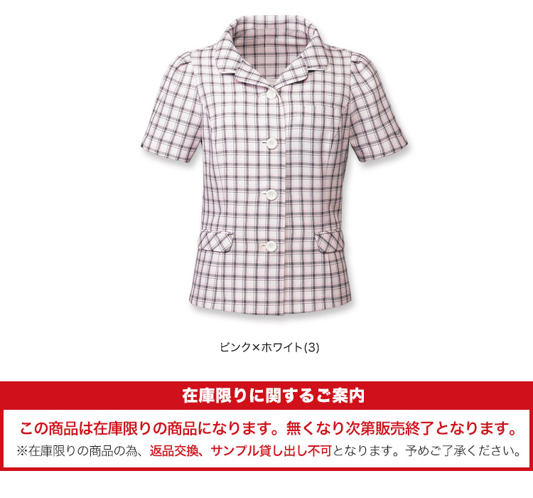 【在庫限り】[春夏用]白×ピンクのチェックが爽やかで女性らしいオーバーブラウス[女性用](76-FB71153)