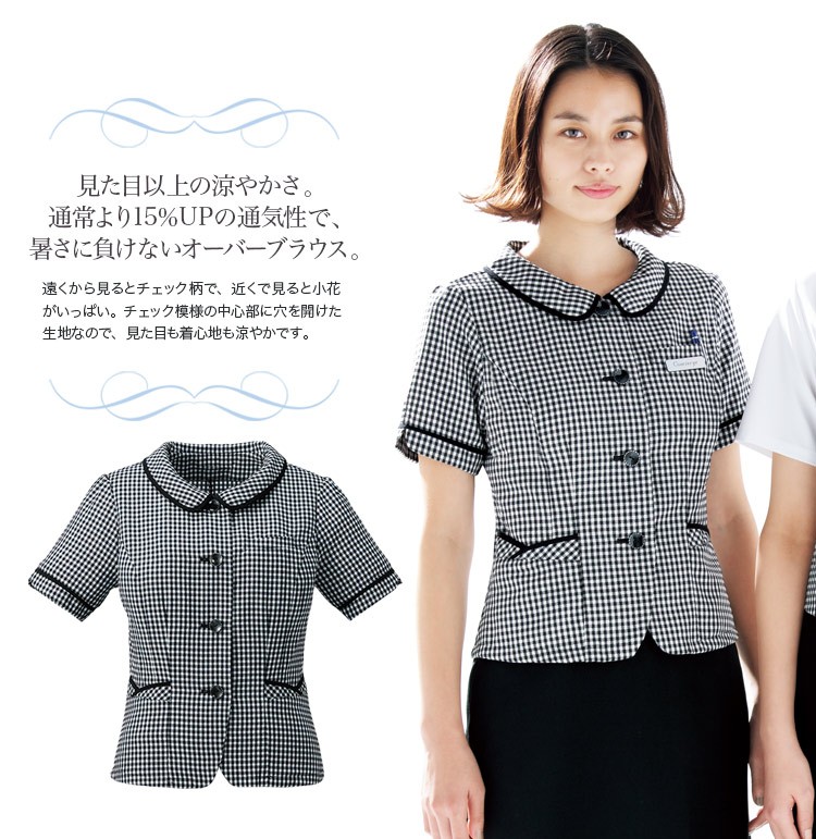 【在庫限り】[春夏用]見た目も着心地も涼しく軽い、ギンガムチェックのオーバーブラウス(76-FB71174)