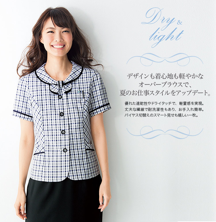 [春夏用]速乾ドライで快適が続く。爽やかなチェック柄オーバーブラウス(76-FB71184)
