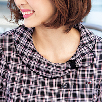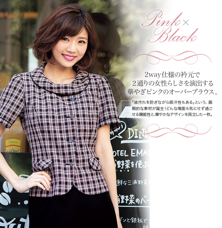 [春夏用]2通りの襟元で表情を変えられるピンクのチェック柄オーバーブラウス(76-FB71205)