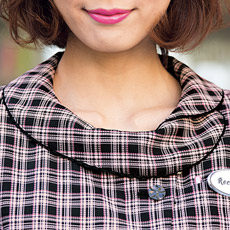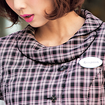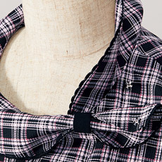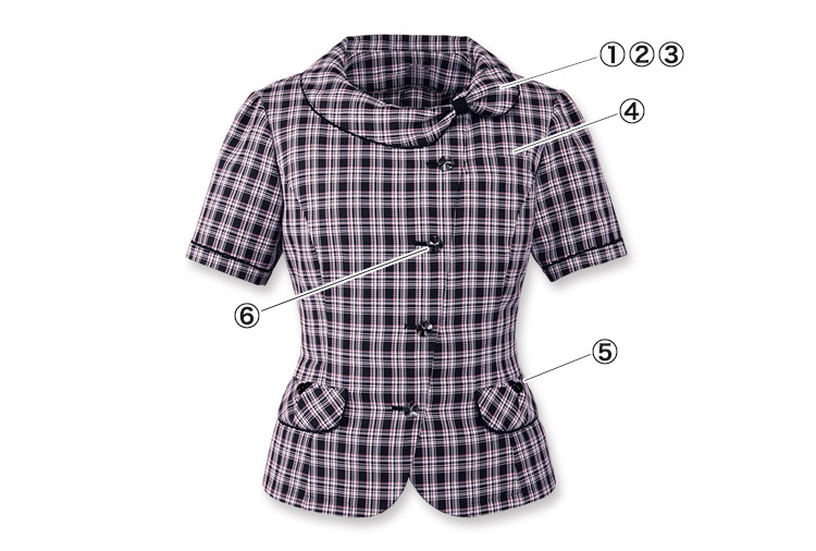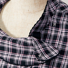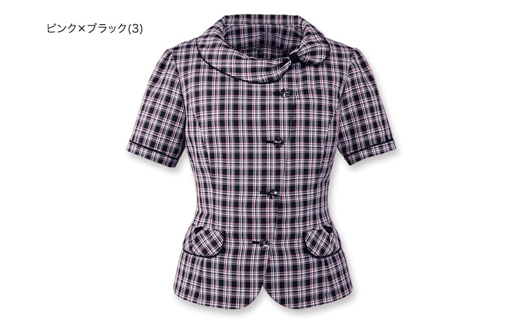 [春夏用]2通りの襟元で表情を変えられるピンクのチェック柄オーバーブラウス(76-FB71205)