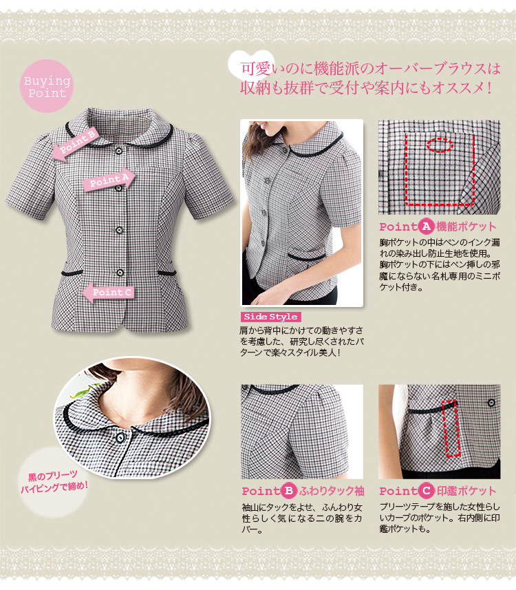 【在庫限り】[春夏用]究極の快適さ&シルエット!柔らか配色のチェック柄オーバーブラウス(76-FB71236)
